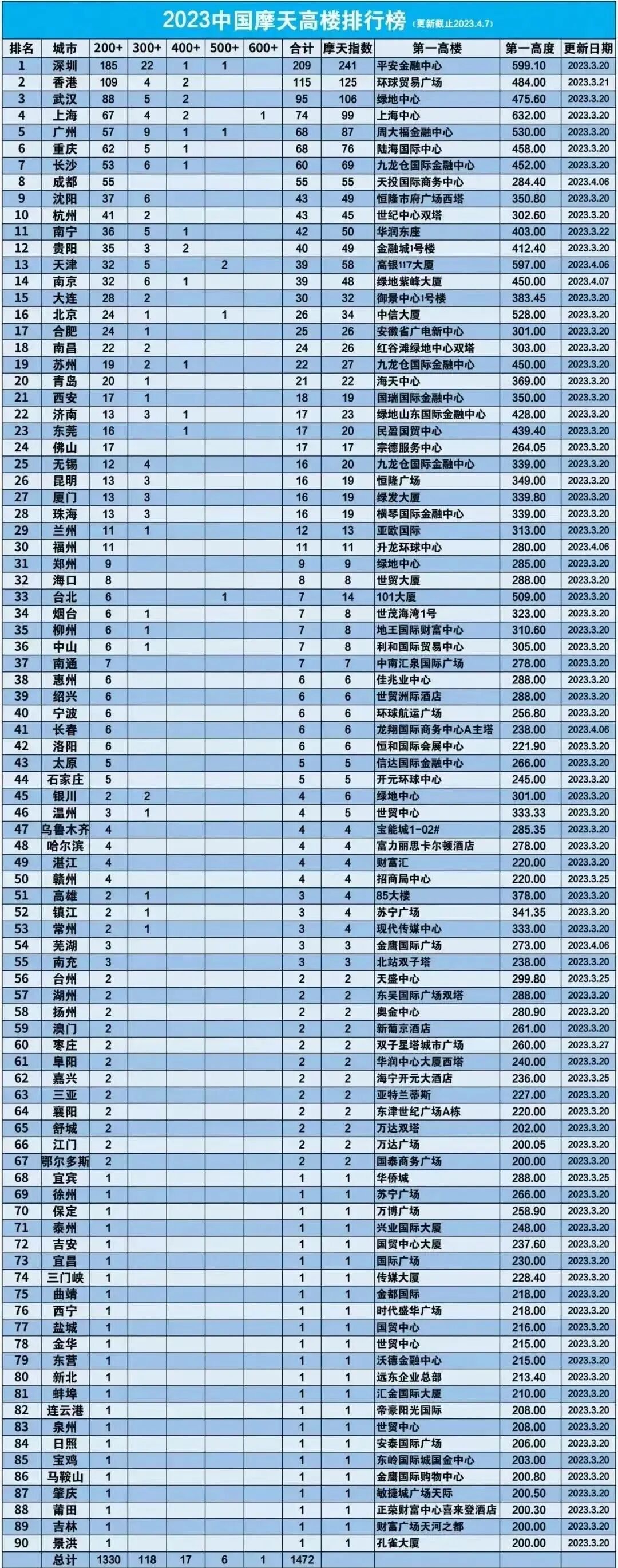 2023年中国摩天高楼排行榜已经出炉,总共90座城市上榜,你的家乡排第几?
