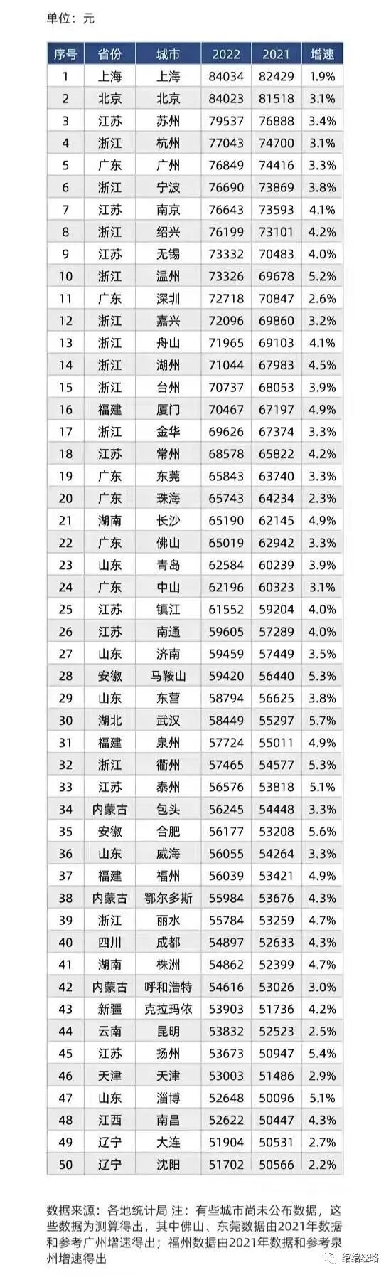 中国“民富”50强城市已经由网友整理出炉,上榜的城市要么是省会城市,要么是一个地区比较发达的地级市,快看看你的家乡上榜了没有。