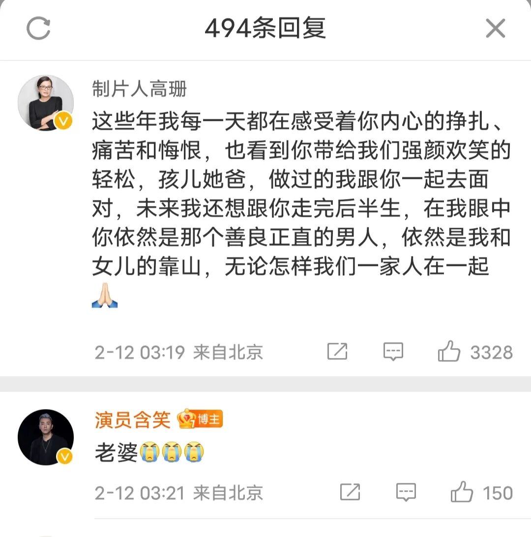他的妻子高珊在评论区力挺。