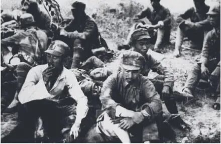 1941年,八路军一二九师三八六旅旅长陈赓(前右)和参谋长周希汉(前左)在攻打榆社前小憩