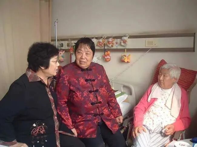 2011年11月13日,邢燕子(中)和另一位优秀知青代表、著名劳动模范侯隽(左)看望正在住院的著名作家黄宗英。黄宗英是采访过她们的作家之一。