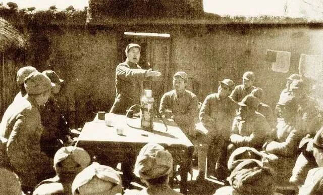 淮海战役中,钟期光给被俘国民党军官讲话。