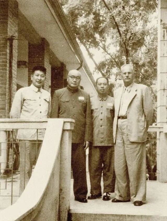1954年,钟期光(左起)和刘伯承、陈伯钧、罗赫里斯基在军事学院。