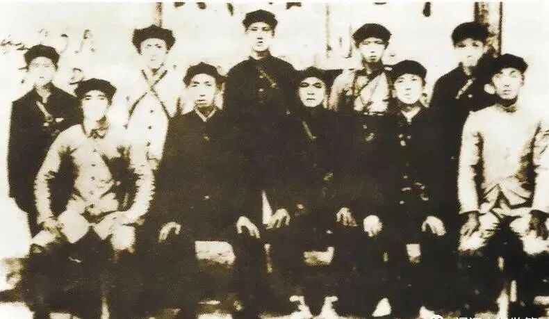 1935年8月,红二十五军部分指战员在两当的合影。前排左起:吴焕先、郭述申、徐海东、戴季英、赵凌波。