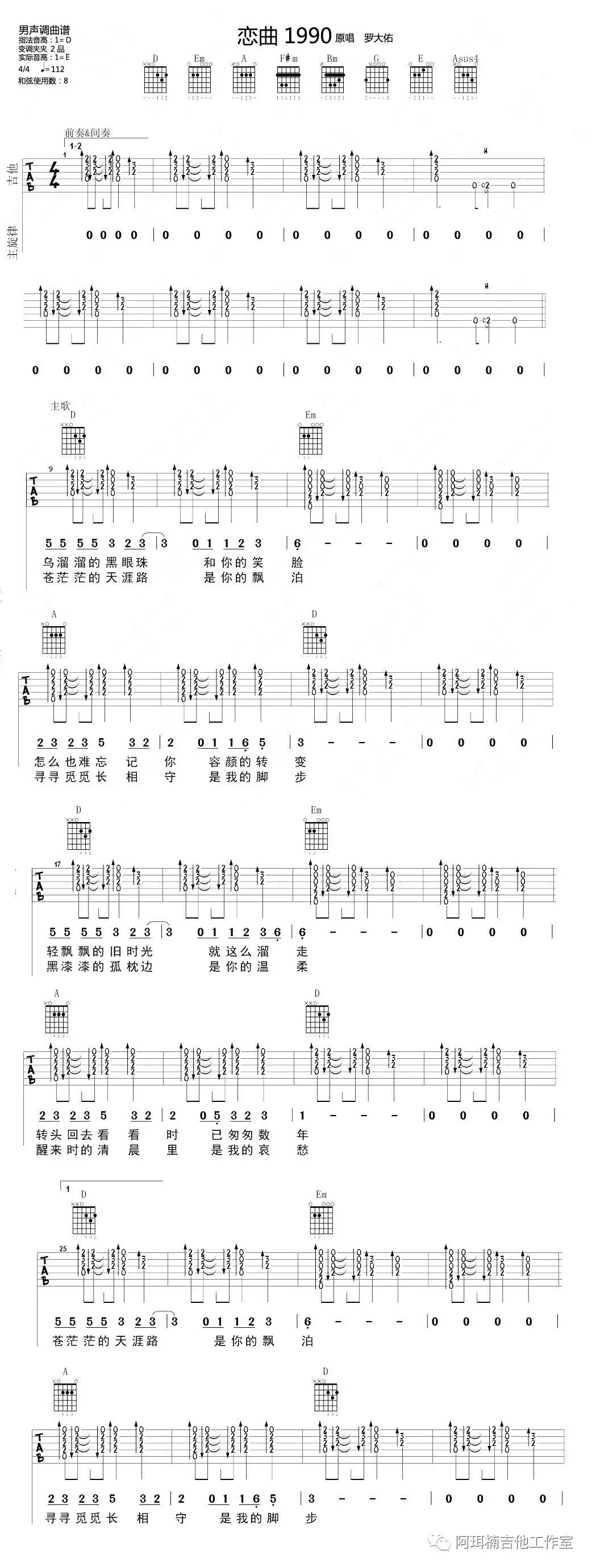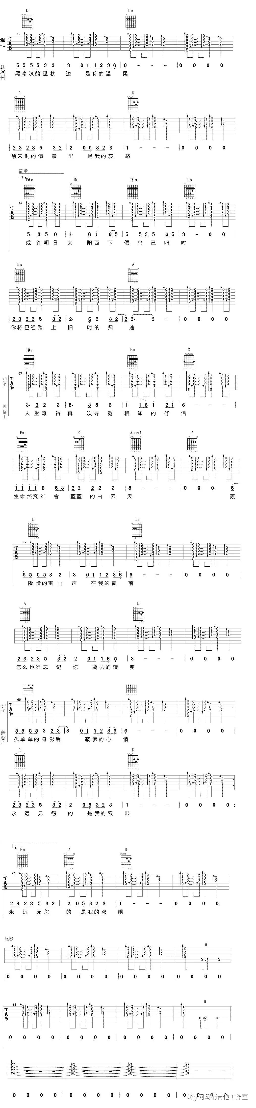 吉他谱 |《安和桥》吉他谱(附间奏)