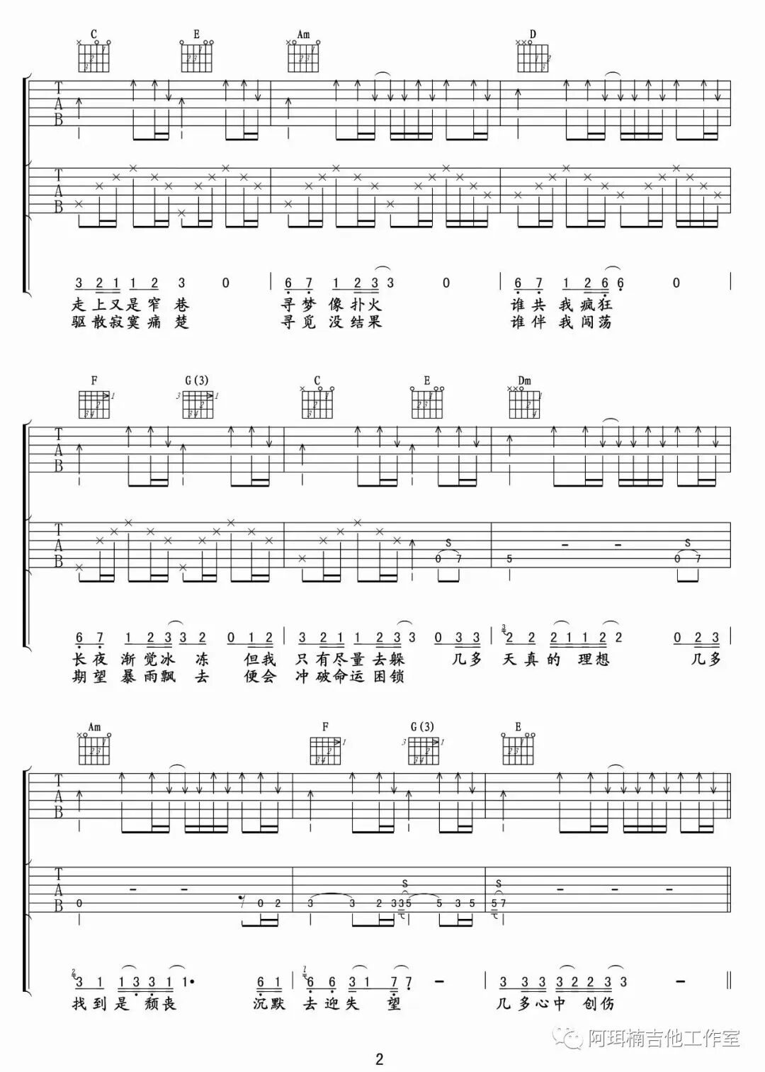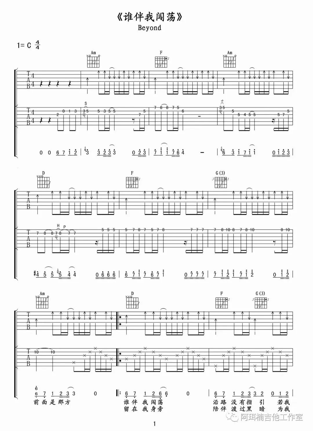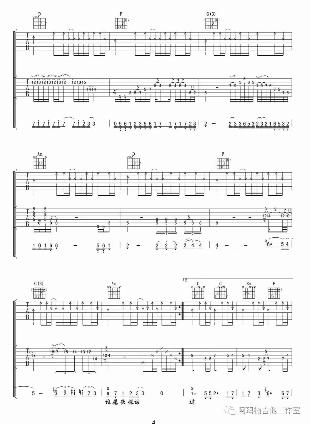 吉他谱 |《安和桥》吉他谱(附间奏)