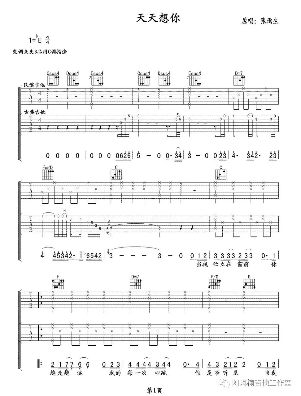 吉他谱 |《玫瑰》原版高清弹唱谱