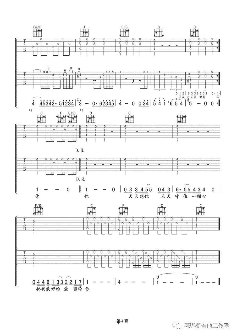 吉他谱 |《安和桥》吉他谱(附间奏)