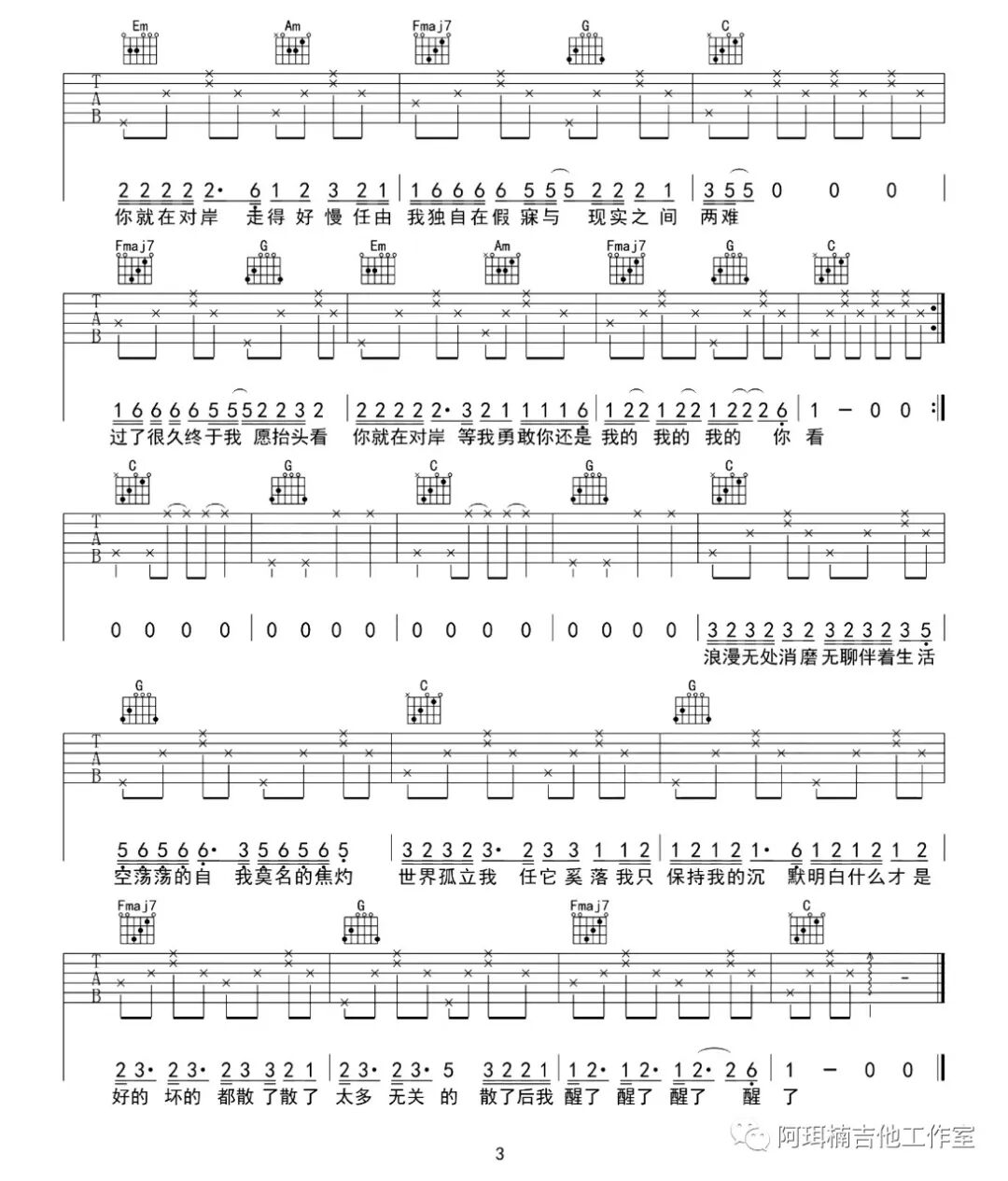 吉他谱 |《安和桥》吉他谱(附间奏)