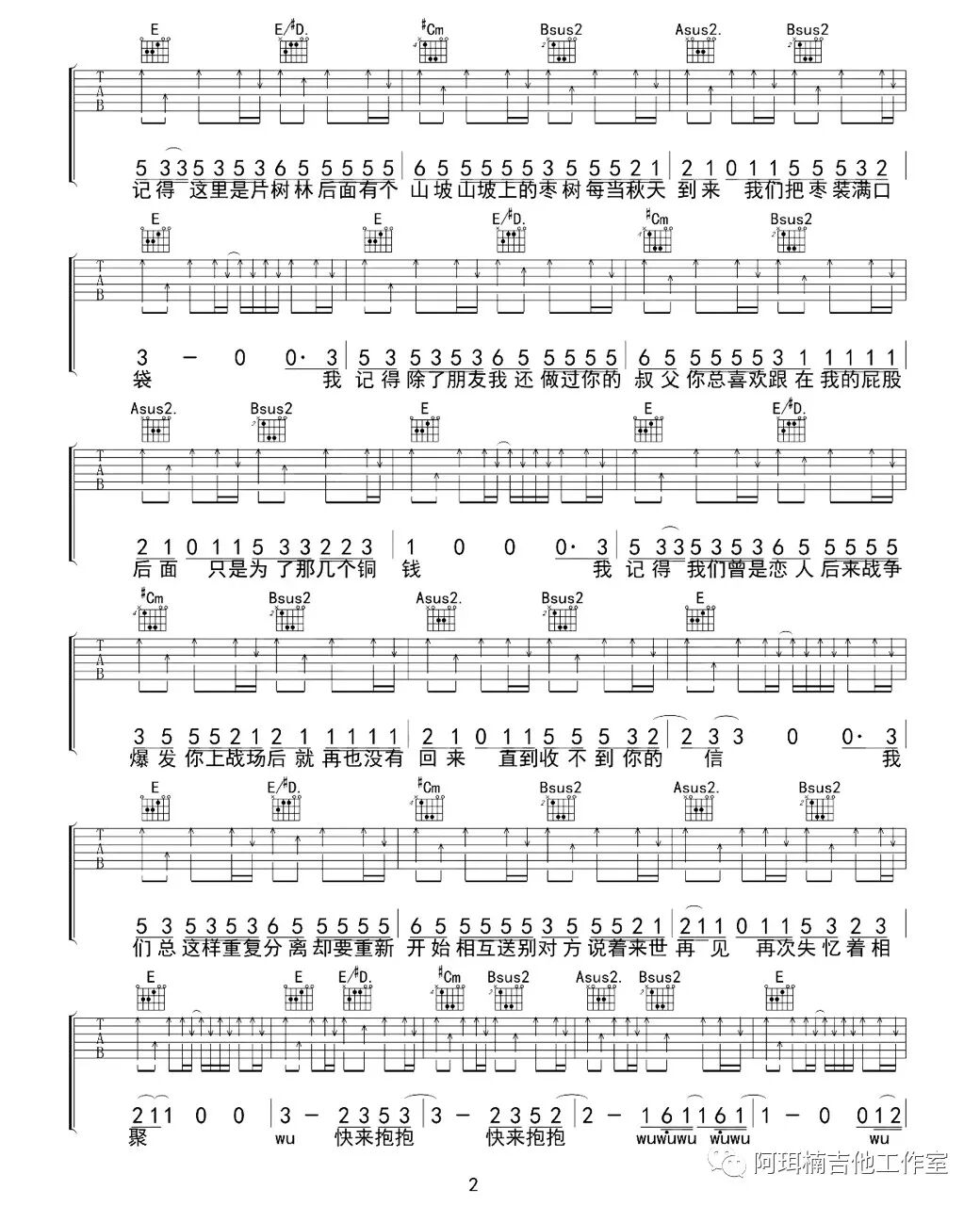 吉他谱 |《安和桥》吉他谱(附间奏)