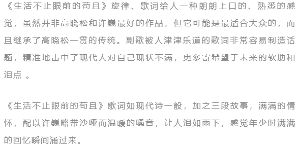 《生活不止眼前的苟且》是高晓松创作,许巍演唱的歌曲,单曲于2016年3月18日发行。该曲是《晓松奇谈》主题曲。