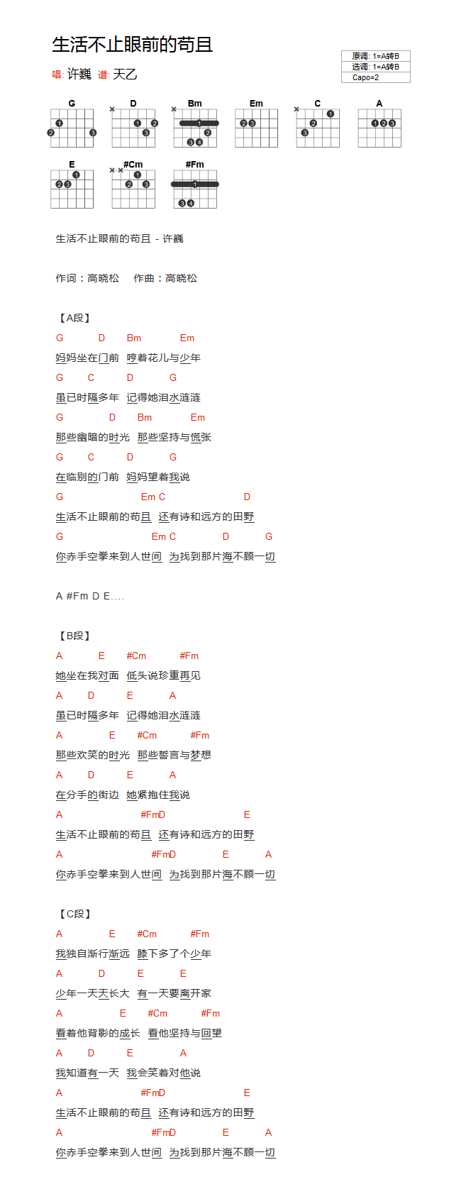 吉他谱 |《安和桥》吉他谱(附间奏)