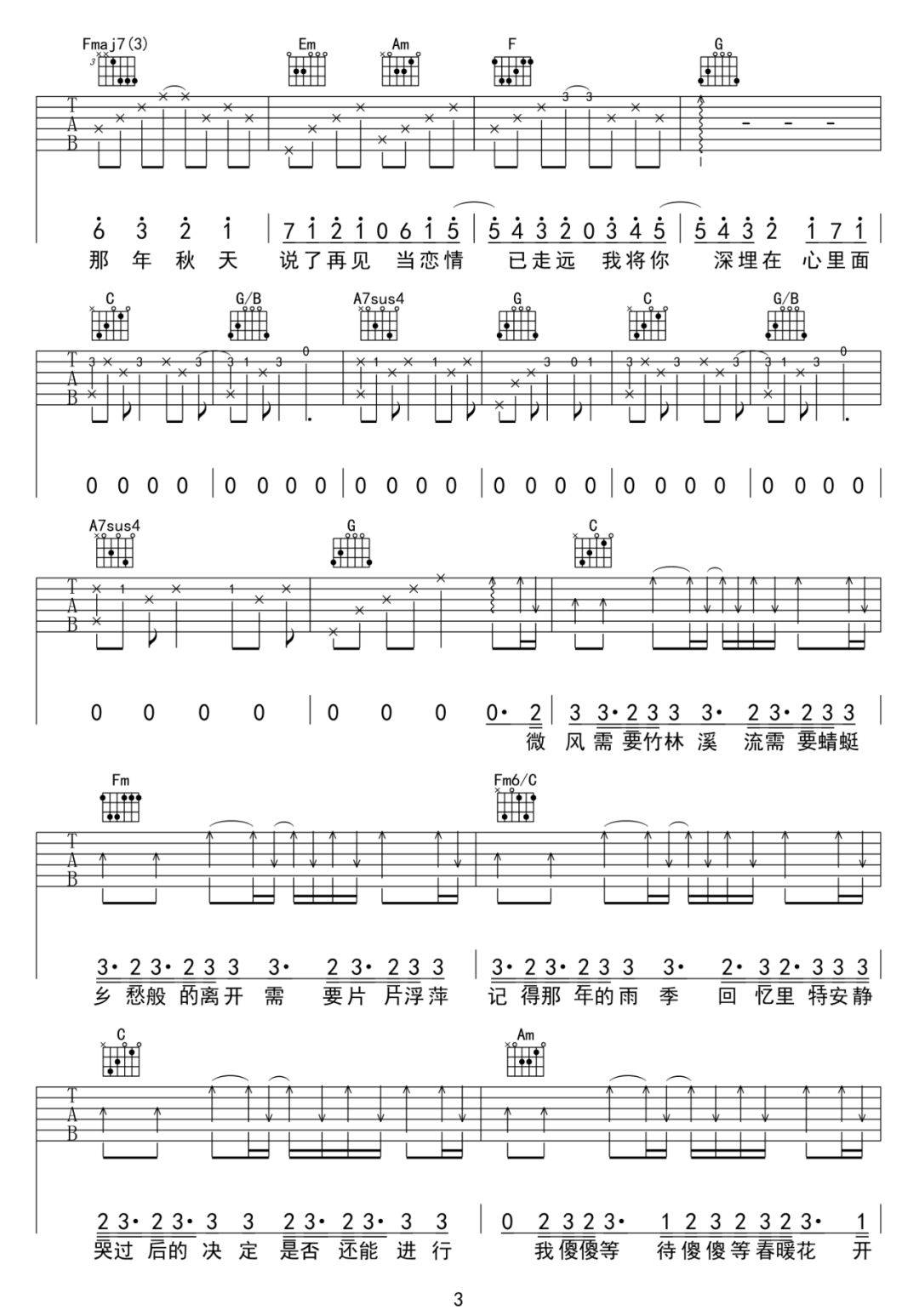 吉他谱 |《安和桥》吉他谱(附间奏)