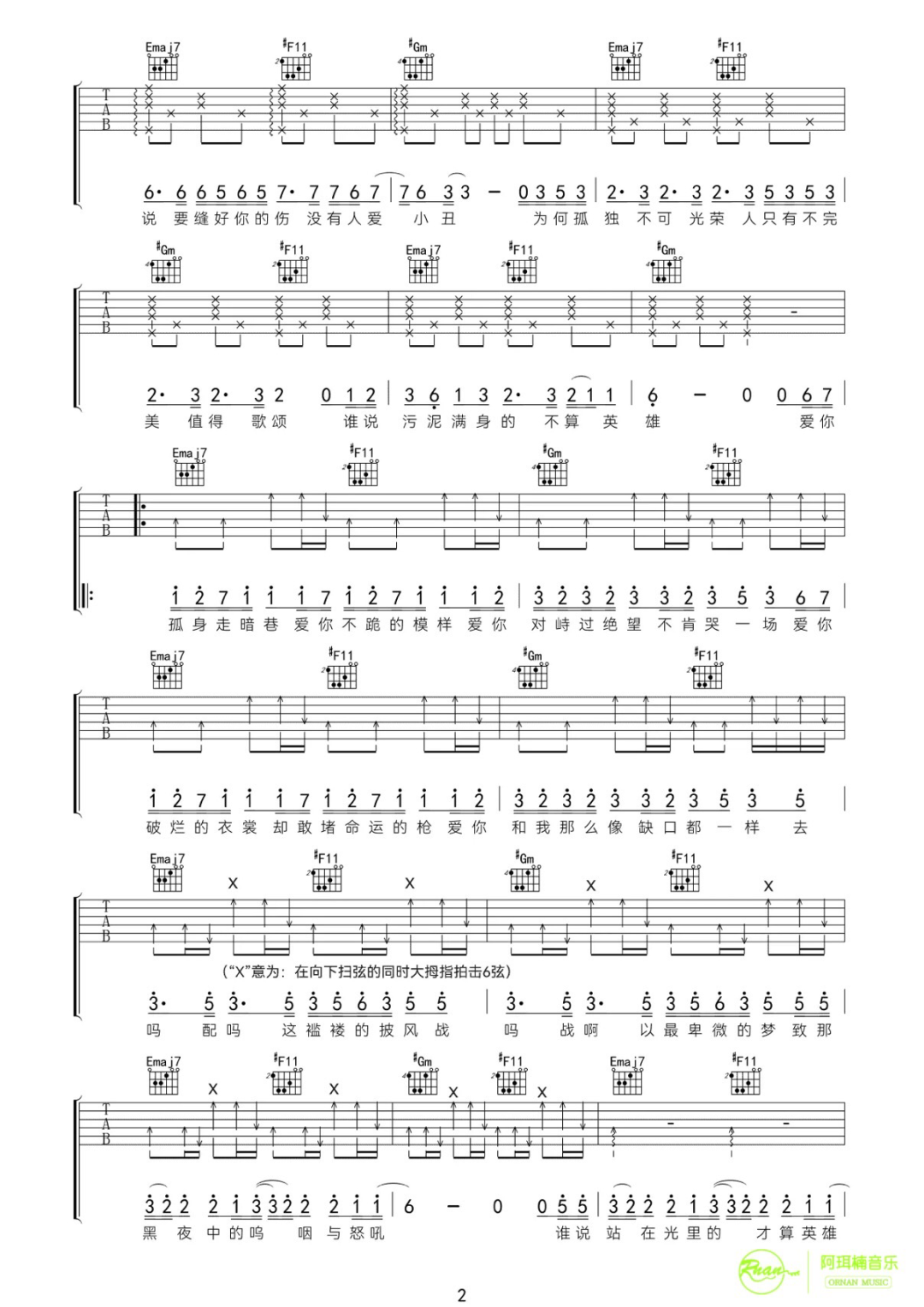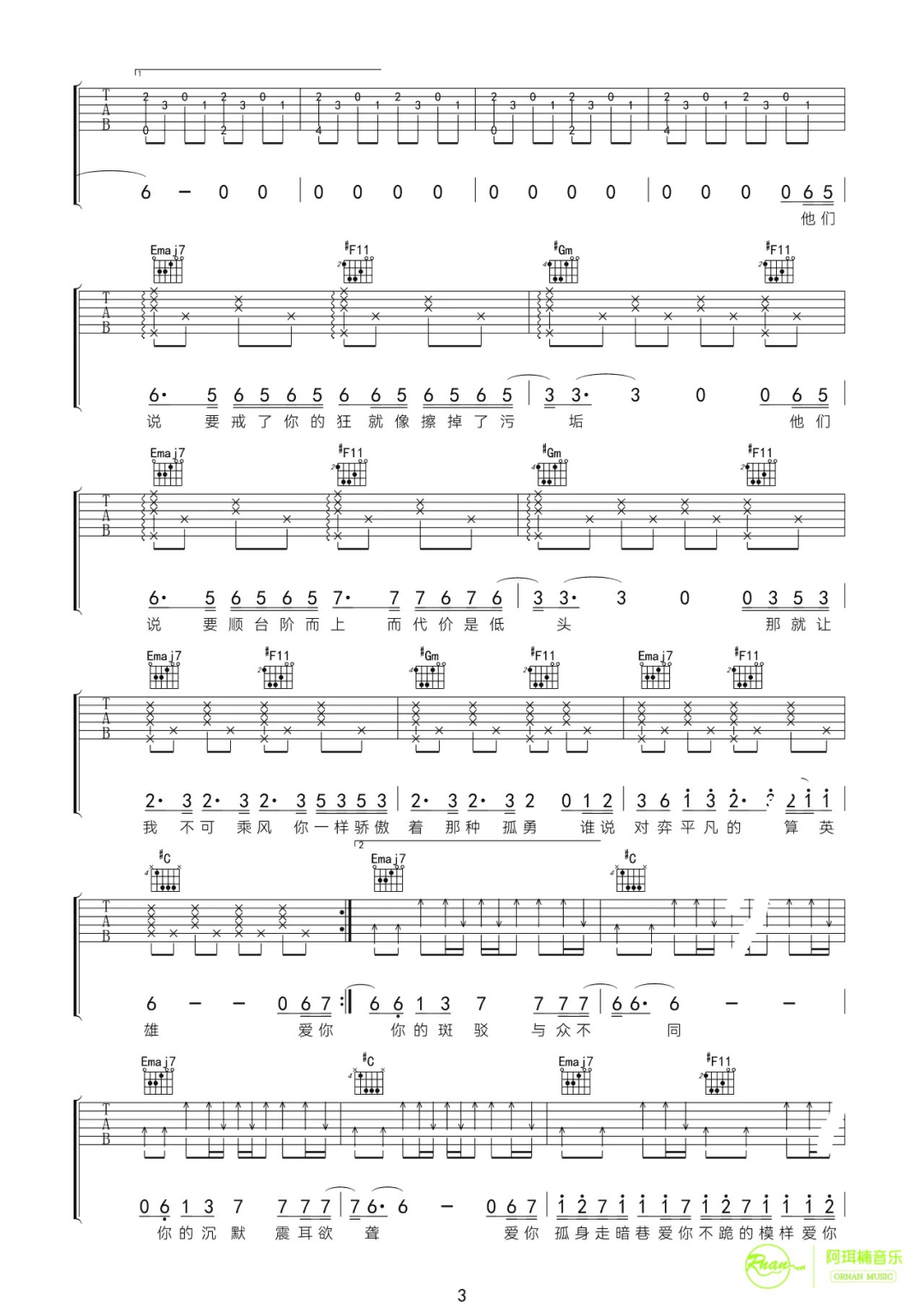 吉他谱 |《安和桥》吉他谱(附间奏)