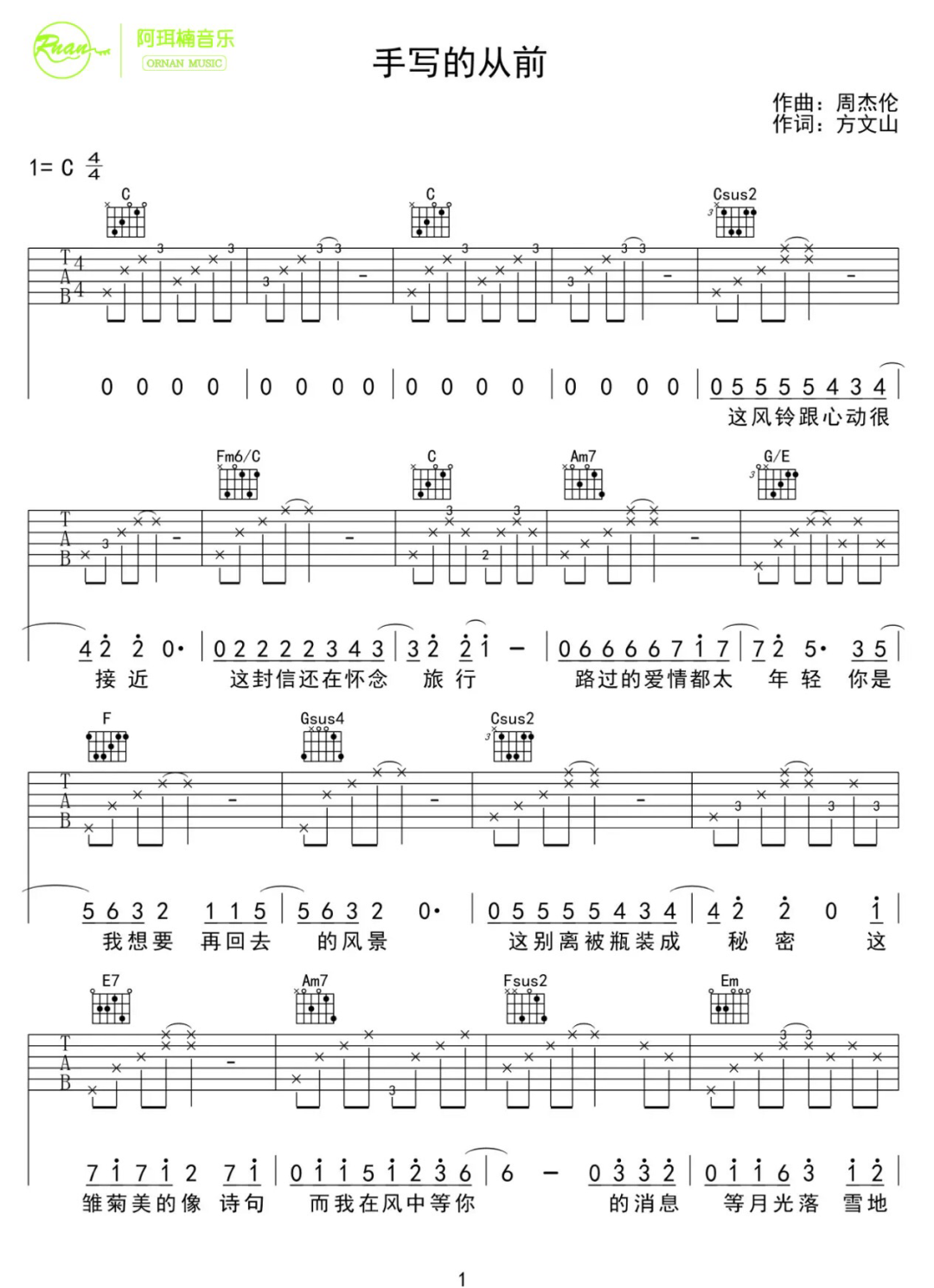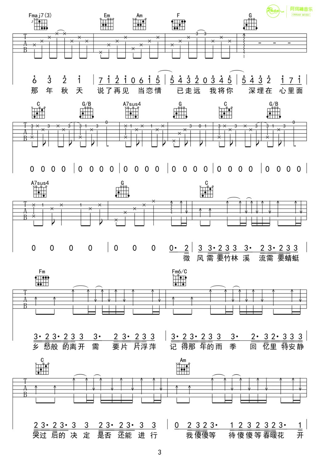 吉他谱 |《安和桥》吉他谱(附间奏)