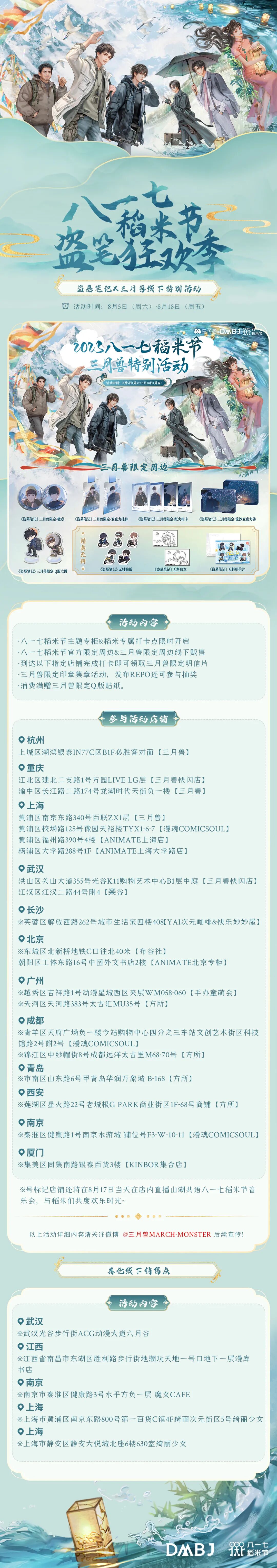 今年线下活动全国开花,在天津、杭州、长白山、北京、重庆、南京、上海等地联动狂欢!