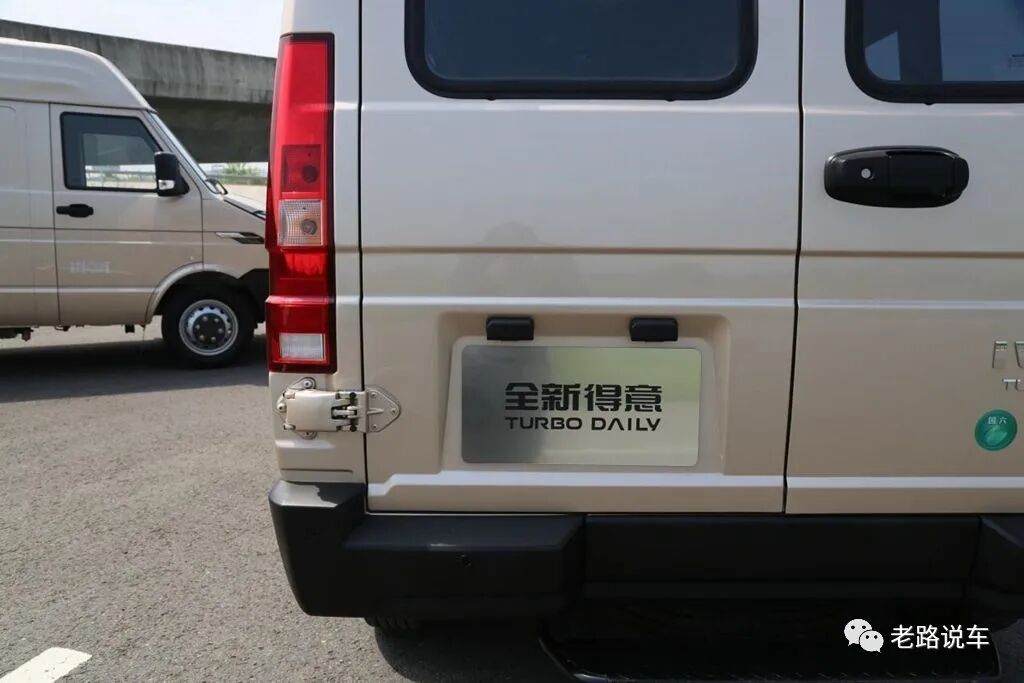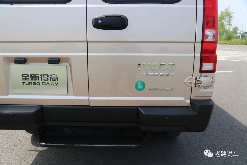 车尾右侧有标志性的IVECO TURBO DAILY标贴,下面则是国六标贴和南京依维柯标贴。