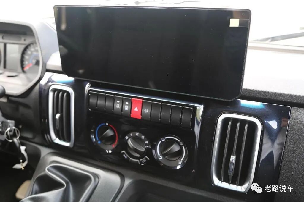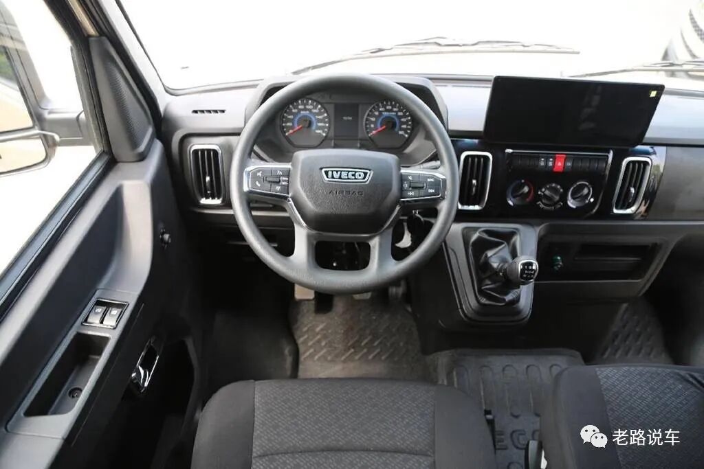 仪表台上方为12.3寸高清触控大屏,搭载第3代IVECONNECT智能交互系统,支持语音操控等多种智能功能。下方为控制按键区域,按键面积大,便于操控。