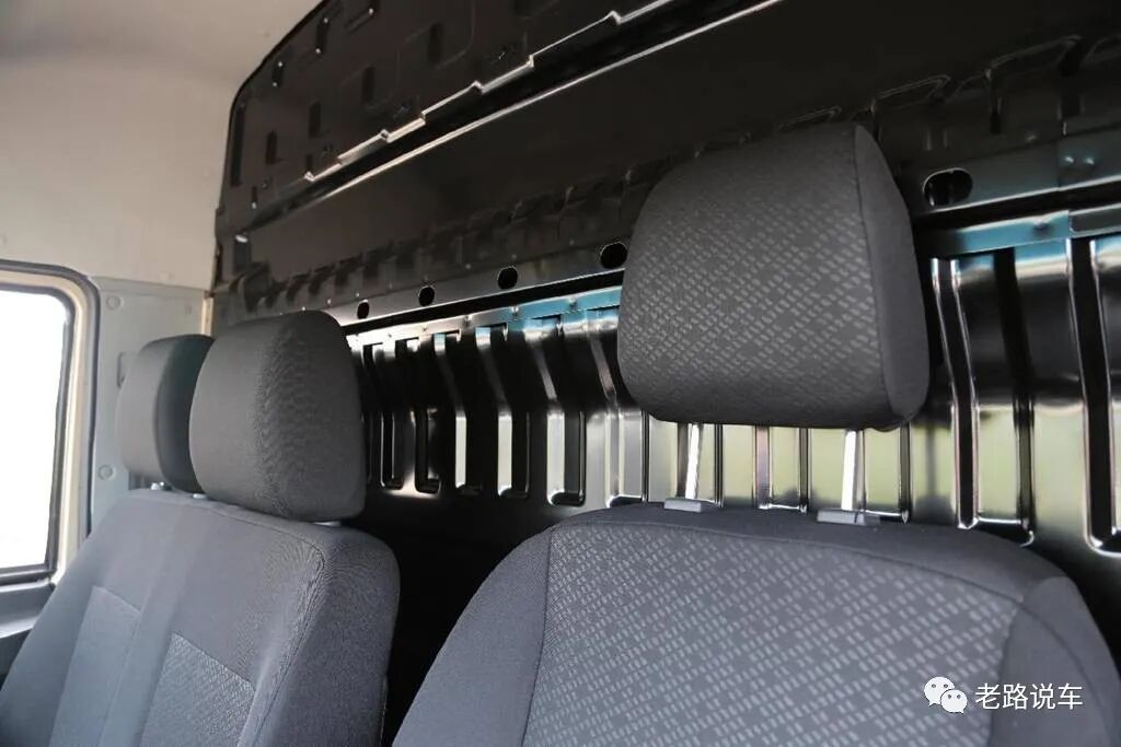 得益于宽体设计,驾驶室内部共设有三个座位。主驾驶为独立座椅,副驾驶为双联座椅,均采用织物面料,带来冬暖夏凉的乘坐体验。