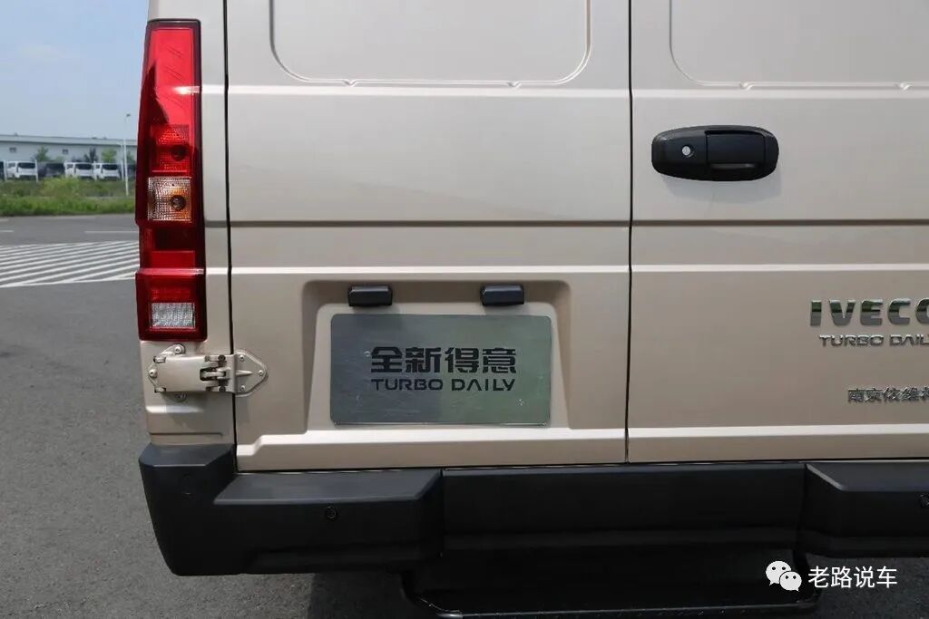 门把手采用横置设计,安装在右侧尾门上。此外,右侧尾门上还设计了“IVECO TURBO DAILY”字样及南京依维柯标志,用以突显自己的身份。