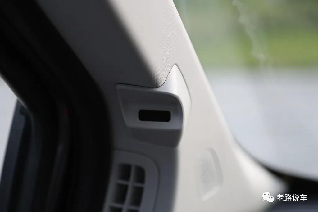 A柱上设计有摄像头,用于实现DMS驾驶员行为识别系统的功能。这套系统能够对驾驶员当前驾驶状态进行识别,避免因疲劳驾驶、短暂失能等紧急情况造成车辆事故。