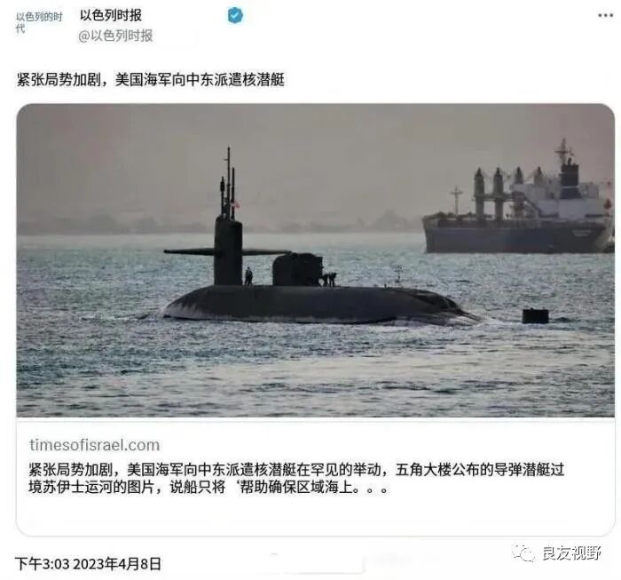 果不其然美国不光是派了他们的中情局局长去对沙特王储兴师问罪,美国海军还在4月8日紧急派出了一艘导弹核潜艇高调过境苏伊士运河,美国这次挥舞着核大棒耀武扬威的来到中东心里又不知憋着什么坏水呢。