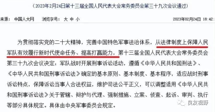 第三个关于军队战时调整适用《中华人民共和国刑事诉讼法》部分规定的决定,它的实质是为了保护战士在执行任务时的合法权益和安全。这并不是什么新规定,早在2015年《中华人民共和国刑事诉讼法》修正案中就已经有相关规定。这项规定的出台并不代表中国正在备战或是处于战争状态。这个规定的根本意义就是给战士吃下定心丸,从法理上给予其大胆歼敌、维护稳定的法律依据。