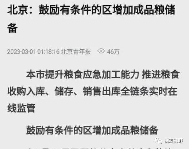 第一个关于北京市鼓励储粮并不是什么新闻。这是中国长期以来的粮食政策之一,旨在保障国家的粮食安全和应对紧急情况。因此,鼓励储备成品粮是一个常规性的做法,与当前的国际形势并没有直接关系。