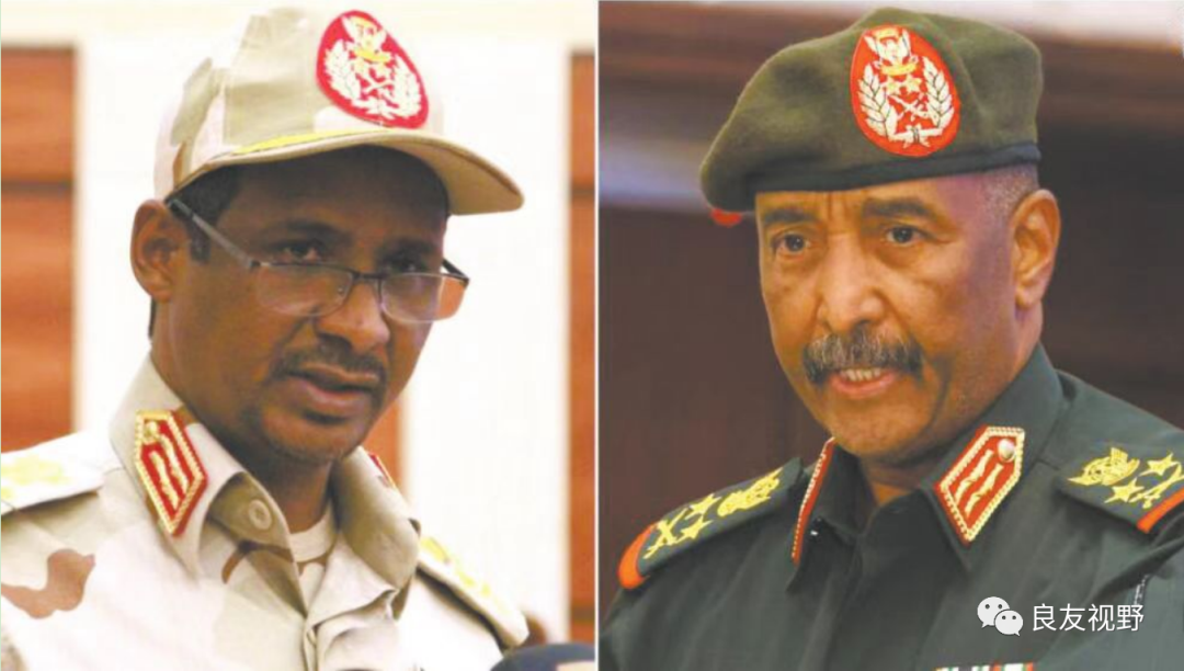 布尔汗和达加洛是这两支军事组织的最高领导人,他们分别是苏丹主权委员会主席和副主席,一度是政治上的合作伙伴,共同参与了2019年的军事政变,推翻了当时的巴西尔政府,后来又在2021年解散了当时的哈姆杜克政府,联手主导了苏丹的政局走向,然而就是在那以后,布尔汗和达加洛,对于苏丹未来的政治走向以及军事变革重组等问题,出现了分歧,彼此之间有了矛盾。