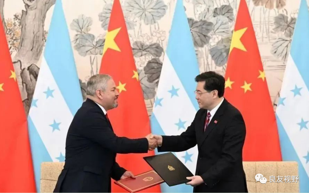 2023年3月26日,中国和洪都拉斯两国外长,在北京见面会谈并共同签署了中洪建交公报。国务委员兼外长秦刚高度赞赏洪方对中洪建交的鲜明态度和坚定决心,中洪建交是任何人、任何势力都无法阻挡的历史潮流,是历史发展的必然结果。