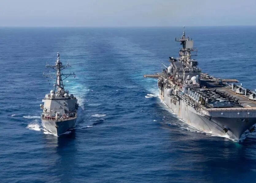美国如此强硬的态度,恰恰暴露出了其自私的一面。在中俄峰会即将召开之前,约翰·柯比的表态显然是要给中俄双方施加压力,但美国所谓的顾虑和立场,实际上并未考虑乌克兰的根本利益。在美国白宫主子的表示下,乌克兰总统泽连斯基立即表示我们要抗争到底,直到胜利。美国不许俄乌停火的同时,美军还在东海动用了两艘闪电航母进行示威。美国海军第一时间发布了 LHA6 美利坚号和 LHD8 马金岛号闪电航母在东海的联合行动照片。
