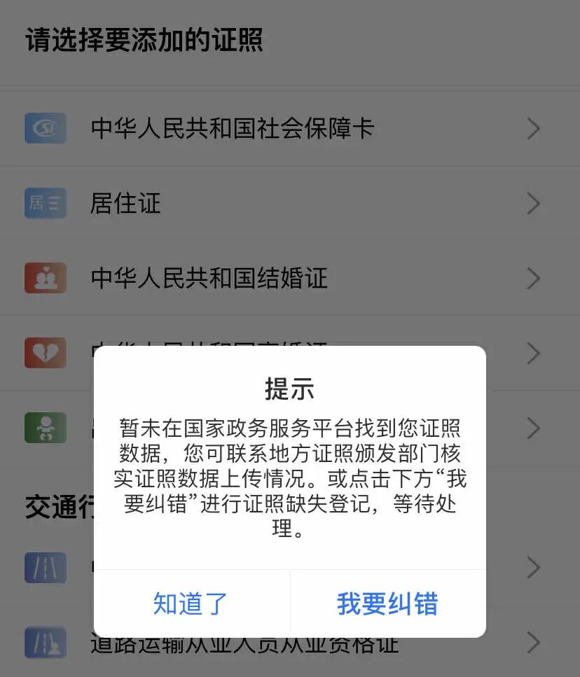 但是这个证件功能的接口并不那么可靠,比如我查不到我自己的学历学位证书、查不到我的教师资格证证书,而且只有几个省份将自己的端口接入了政务服务平台,如:江苏、浙江、福建、江西、重庆等地。