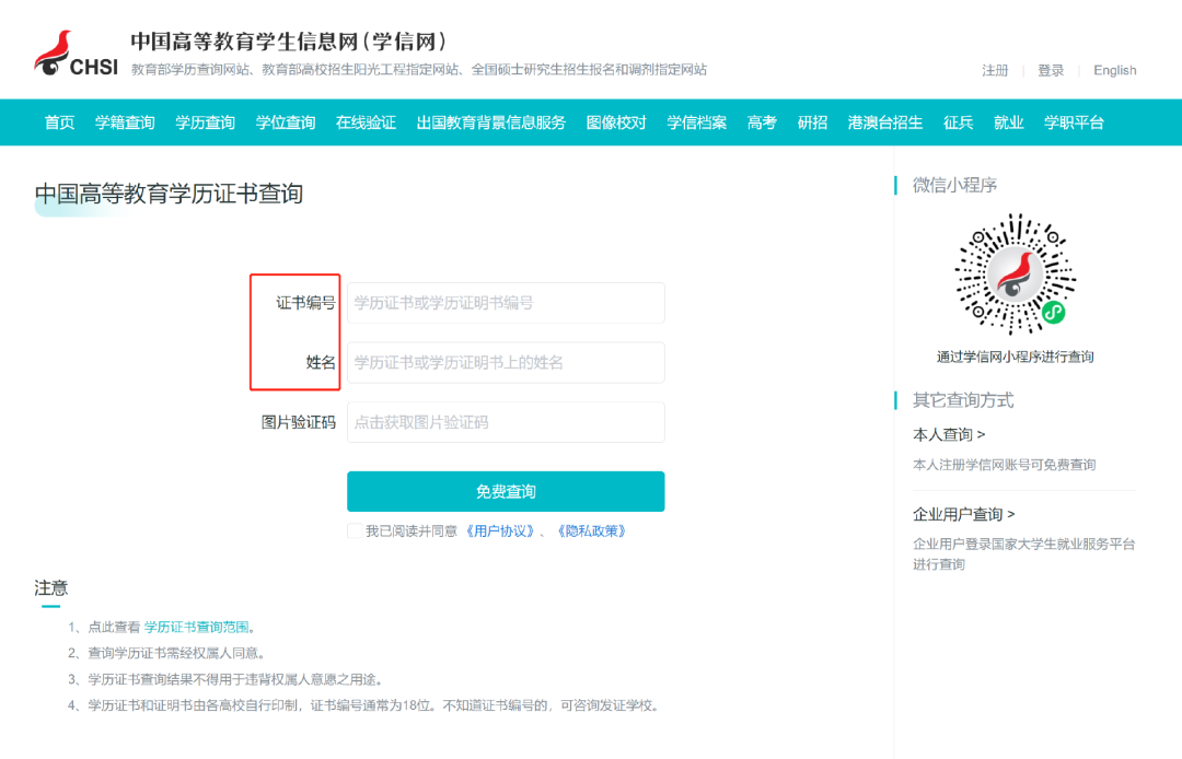 国外的学历可以在国家政务服务平台的网站中查找,输入姓名和认证书编号同样也可以看到。