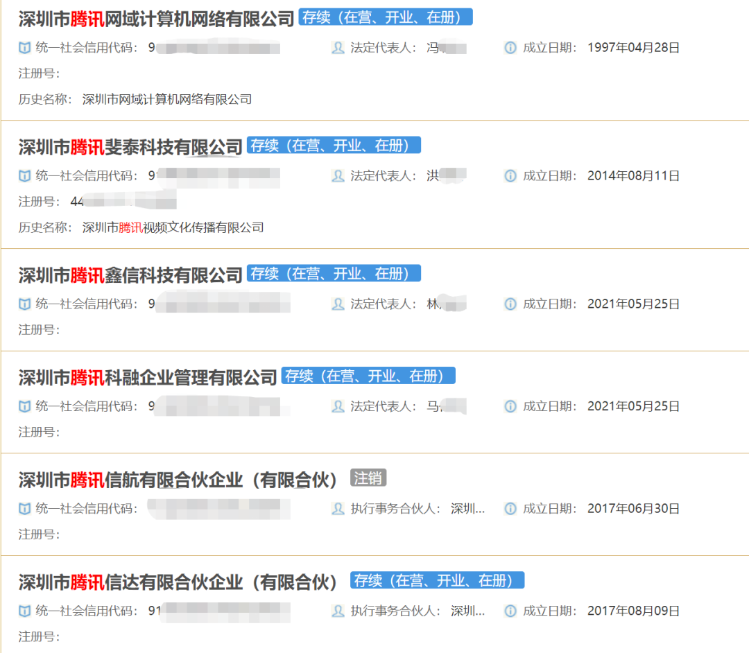 这里实在是不好举例了,放鹅厂的给大家看看吧,天眼查本身是模糊搜索的,所有和这个词相似的东西也会出现。