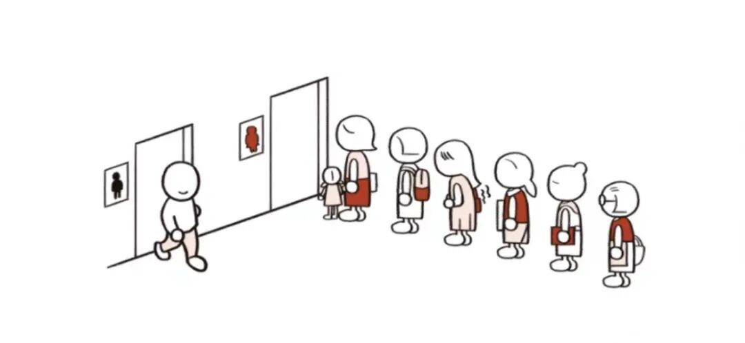 原本厕所坑位就已经有差距,如果设计时还不考虑具体场所中实际的男女比例,排队的情况只会更加严重。