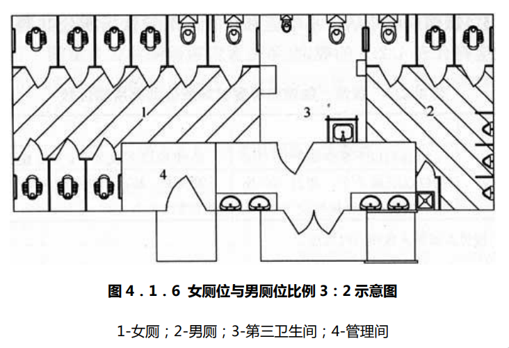 其中,厕位比例的规定从2016年以前的“厕所男蹲(坐、站)位与女蹲(坐)位的比例宜为1:1~2:3”,变成了现在的“女厕位与男厕位的比例不应小于 3:2”。
