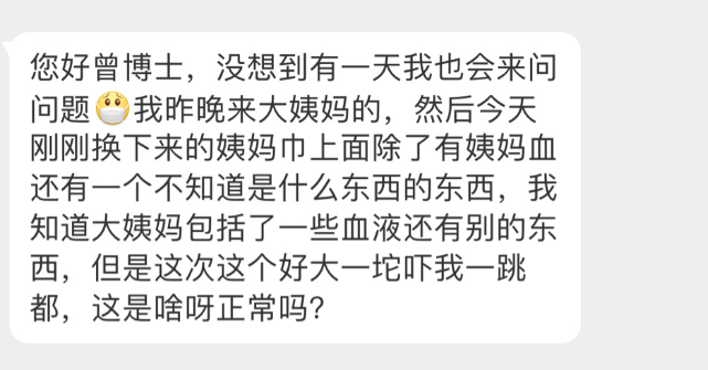 如果你出现了“二般情况”,或是像开头那位投稿女生一样整块子宫内膜脱落的情况,基本属于正常情况,不需要过度担心。