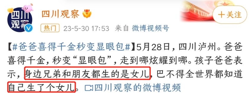图为 用词为“爸爸生了女儿”的新闻|图源 微博@四川观察