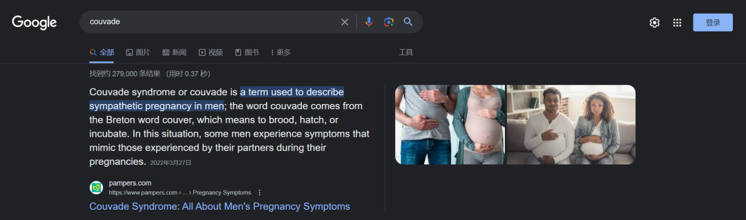 在西方,产翁一词被译为“couvade”。源于法语词汇“couver”,译为“孵化”。如果现在打开Google搜索“couvade”,页面中首先出现的就是“couvade syndrome”这一字眼。