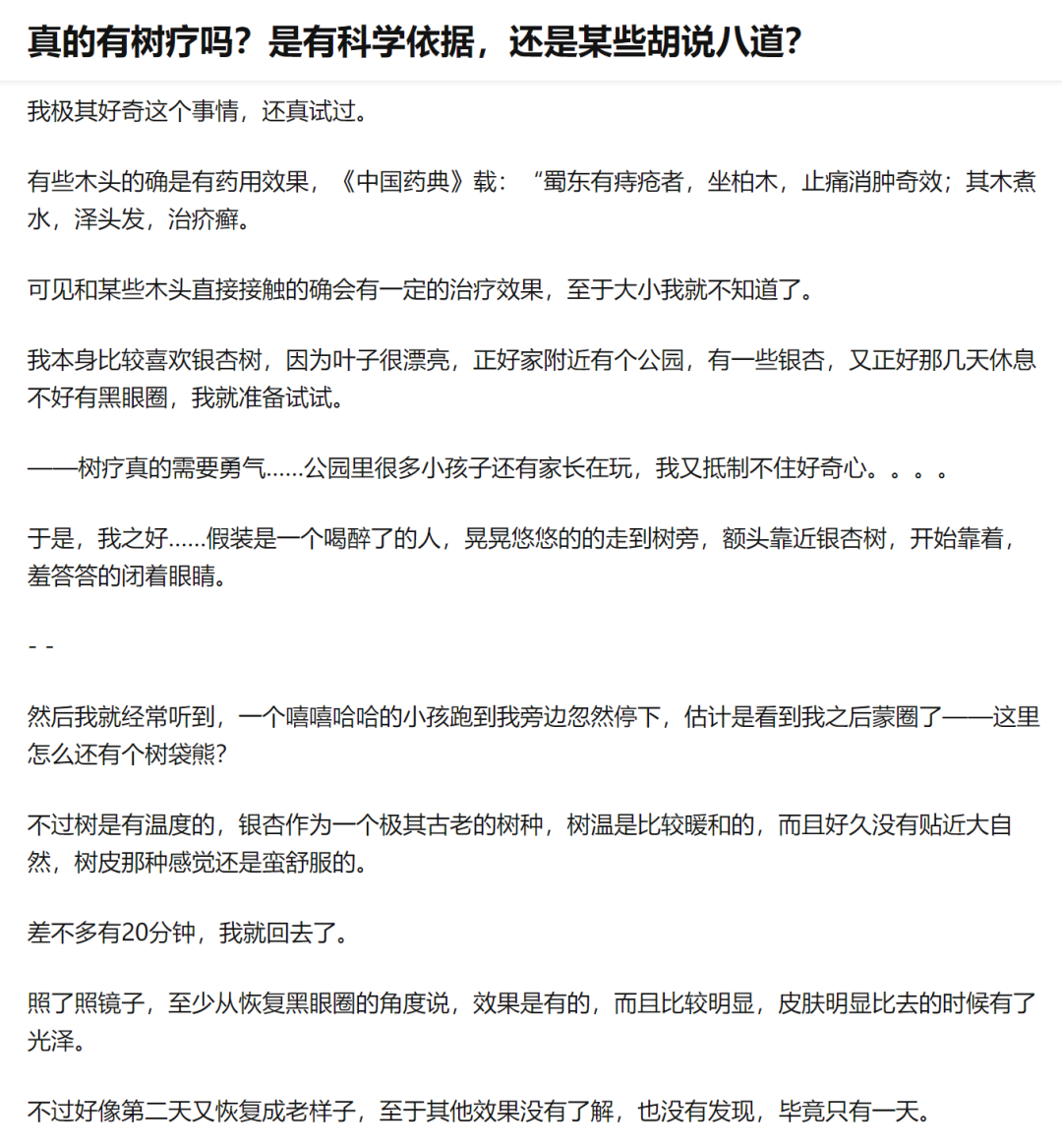 在各个平台检索后,找到了试了树疗后的心得体会: