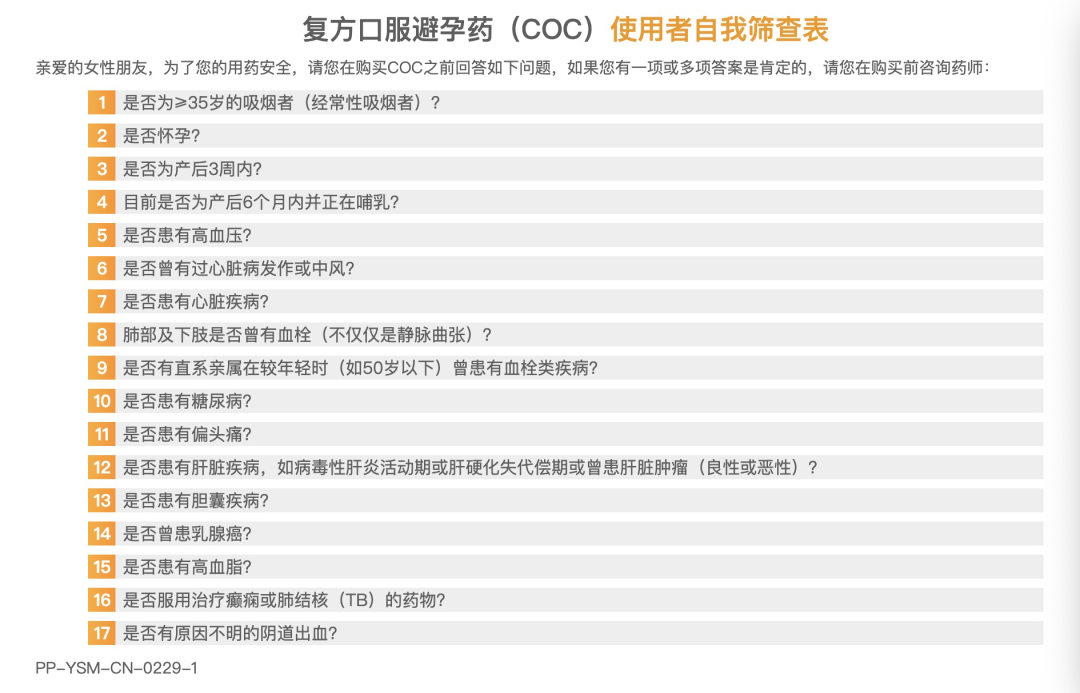 在初次尝试短效口服避孕药之前,请看一看这份使用者自我筛查表,并在对自己的身体情况有初步了解后,寻求专业医生的建议。