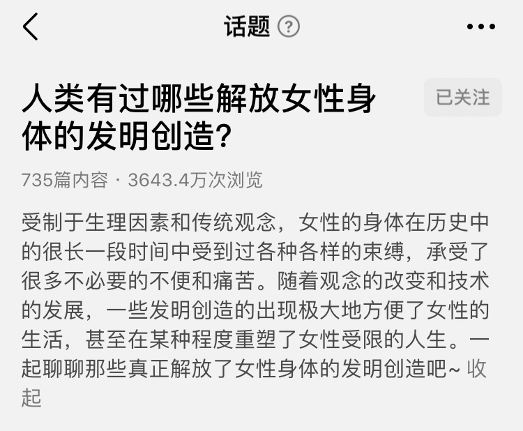 昨天刷豆瓣的时候,桃子看到了一个很有趣的话题#人类有过哪些解放女性身体的发明创造#。
