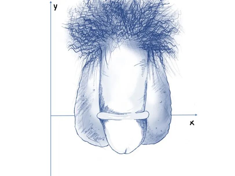 虽然我们画师画出了一个大概,但每一个人的具体情况都是不一样的,比如说图中的丁丁是比阴囊短的,但有些丁丁疲软状态下会长过阴囊。