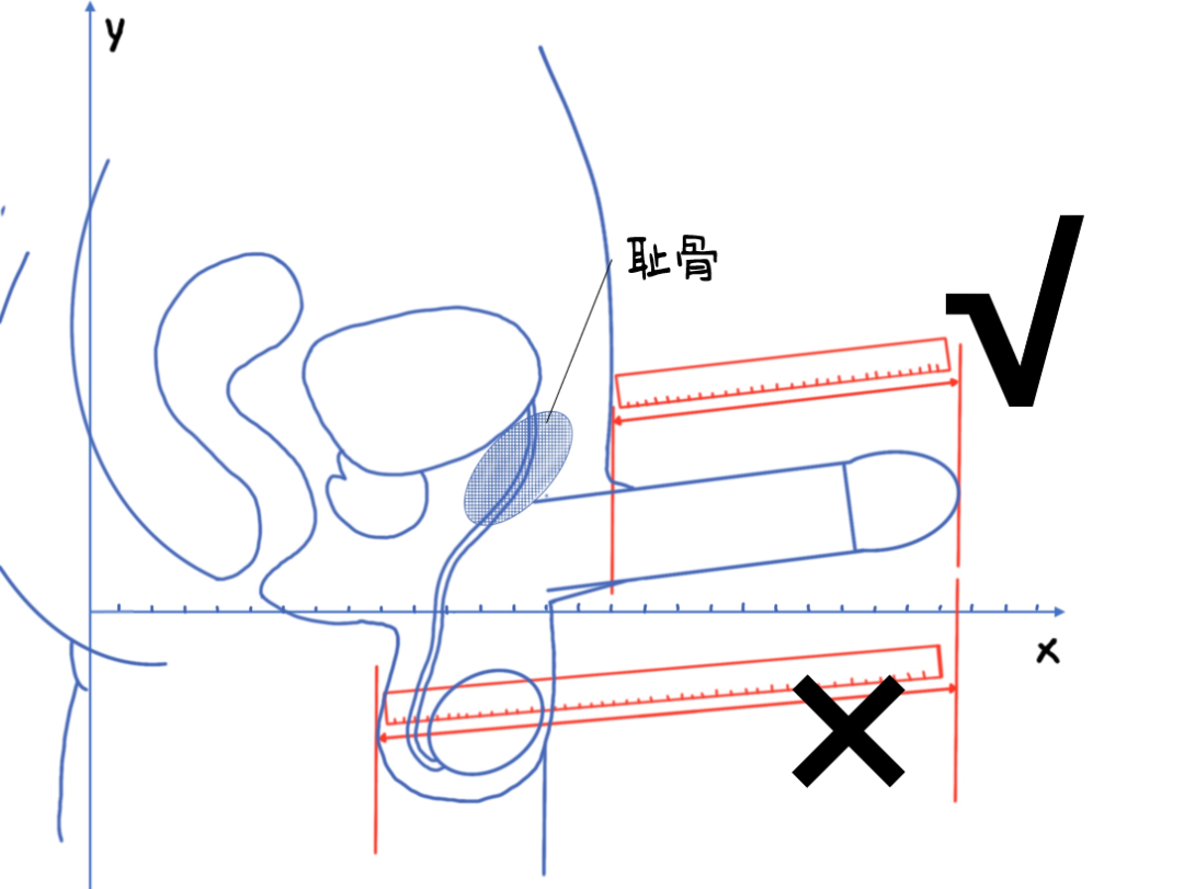 测量的时候,要稍微用力抵住皮肤,因为有些人腹部脂肪较多,皮下脂肪盖住了一部分的阴茎,可能造成测量的误差。