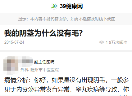 大部分的男生女生都会长毛,但这不代表不长毛就是奇怪的。也会有人因为发育或疾病而不长毛,如果不放心的话就去正规医院看一下!