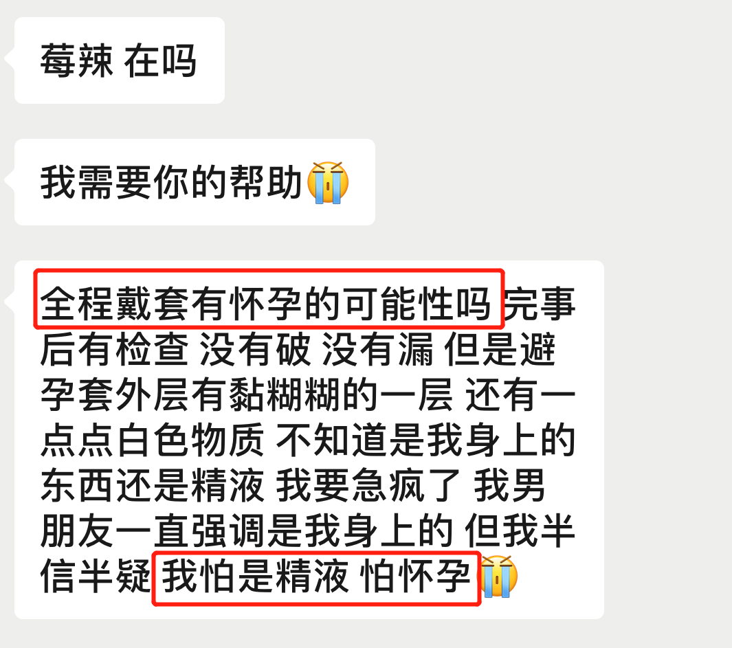 这些提问者都是女生。她们的担心并不是没有道理,但顺着她们的提问,我们发现,有一群女孩总是在事后战战兢兢,草木皆兵,饱受“恐孕焦虑”的折磨。她们日常灵魂拷问自己“会不会怀孕了啊?”