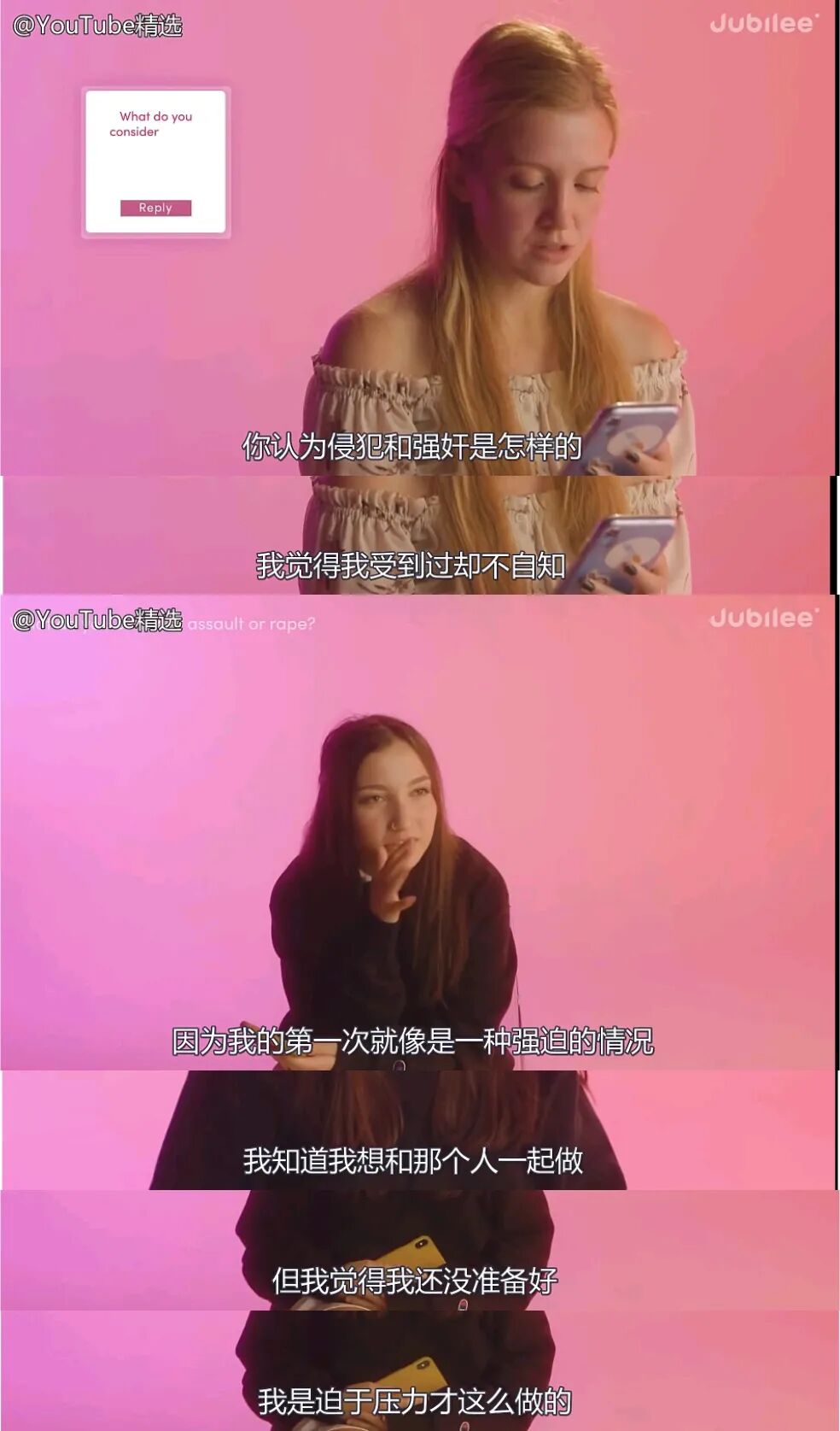 在一个性教育采访里,主持人问:“你觉得侵犯和强奸是怎么样的?”