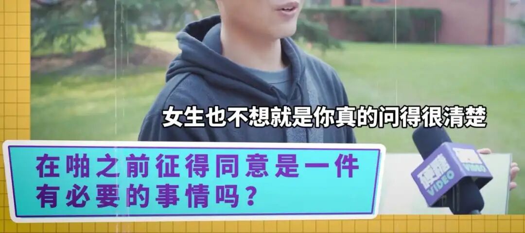 在一个关于性同意的街访视频中,有不少观众在弹幕里表示,“会破坏气氛吧”、“双方暗示到位了,一个眼神就吻”、“直接问又尴尬又扫兴”······