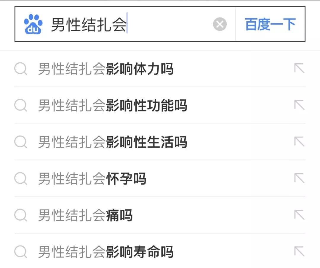 顺着这个问题,本莓辣er第一步,先进入到搜索平台,输入五个字之后,发现大家对结扎的影响的各类担忧: