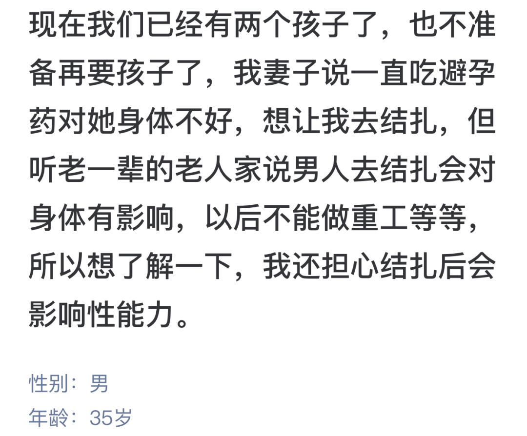 (35岁男,已有二子,想了解结扎对身体与性能力的影响